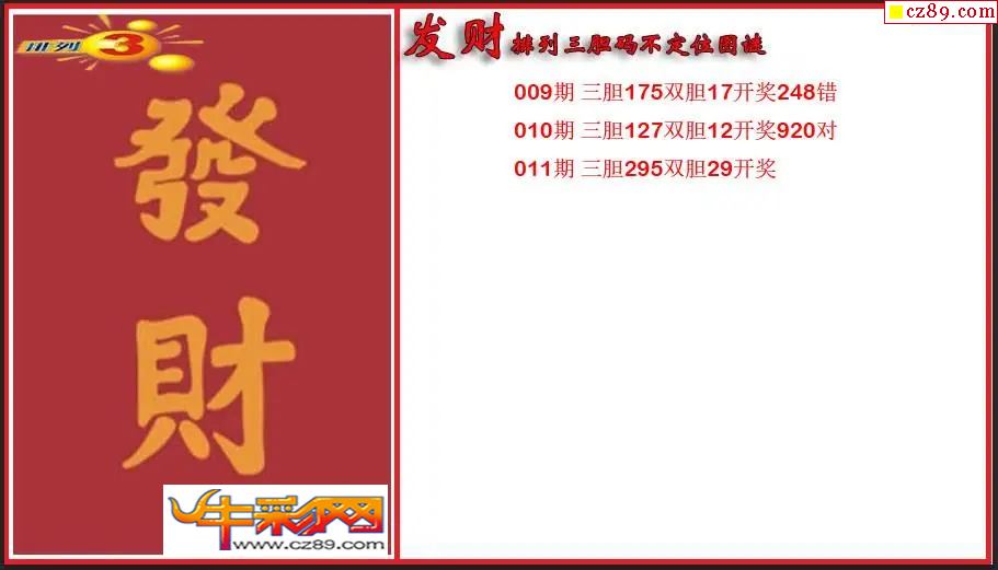 > 2026011期P3发财胆码不定位图谜